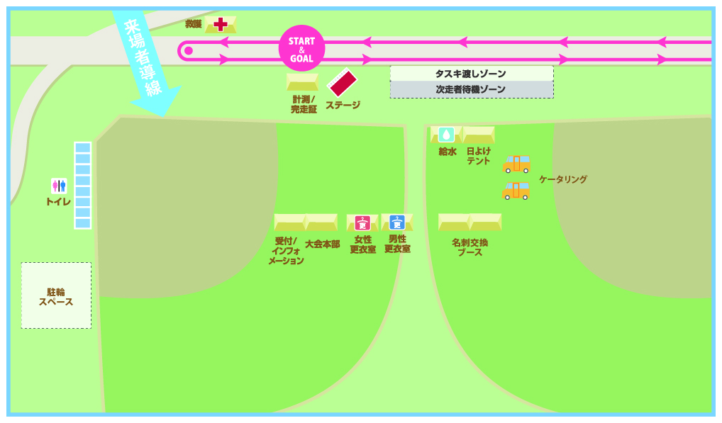 | 更衣室 | あり。会場内に男女更衣室テントをご用意します。 | ||||||||||||||||||||||||||||||||||||||||||||||||||||||||||||||||||||||||||||
