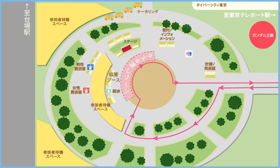 | 会場 | 東京 お台場 セントラル広場(シンボルプラムナード公園 ガンダム前付近) 〒135-0091 東京都江東区青海1丁目1 ゆりかもめ線「台場駅」 徒歩5分 りんかい線「東京テレポート駅」 徒歩9分 |