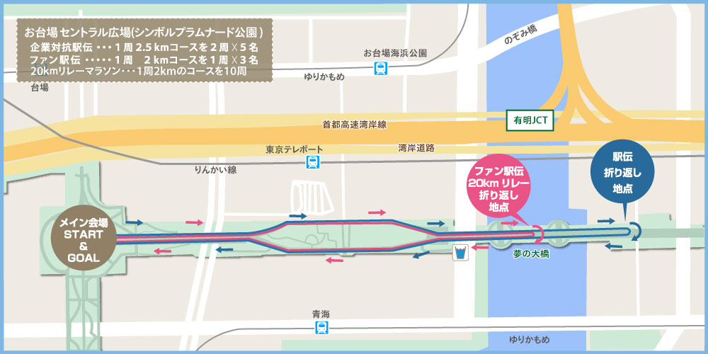 【企業対抗駅伝(5km×5区間)】 ▼男性部門 07:00 受付開始 08:10 開会式 08:30 スタート 10:30 表彰式 11:00 競技終了 ▼男女混合部門 09:30 受付開始 11:00 開会式 11:10 スタート 13:20 表彰式 13:50 競技終了 ※各部門スタートの20分前までに受付をお済ませください。 (代表者のみで受付可能です。) 【企業対抗ファン駅伝(2km×3区間)】 12:30 受付開始 13:50 開会式 14:00 スタート 14:45 表彰式 14:45 競技終了 【エンジョイリレーマラソン(2km×10周)】 12:30 受付開始 13:50 開会式 14:00 スタート 15:30 表彰式 16:30 競技終了 17:00 会場内コンテンツ終了(更衣室など) ※スケジュールは変更となる場合がございます。 |