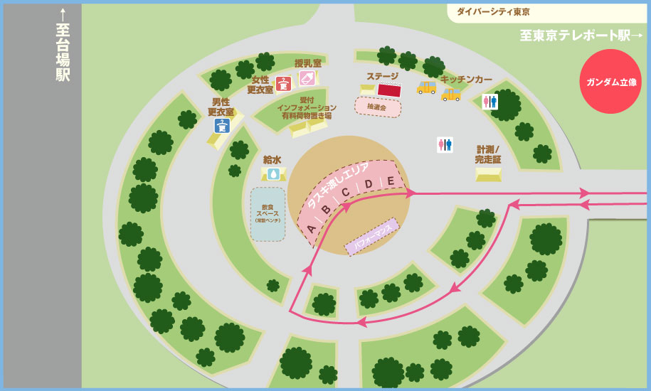 | 会場 | 東京 お台場 セントラル広場(シンボルプラムナード公園 ガンダム前付近) 〒135-0091 東京都江東区青海1丁目1 ゆりかもめ線「台場駅」 徒歩5分 りんかい線「東京テレポート駅」 徒歩9分 |