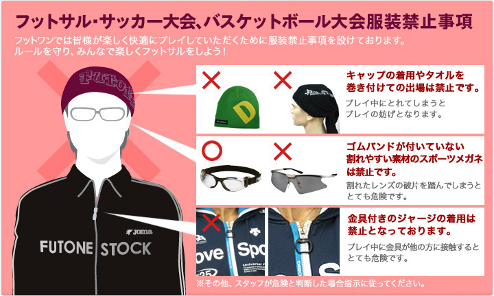スポーツワンフットサル大会では、サッカースパイクの使用は全面的に禁止させていただいております、ご遠慮ください。