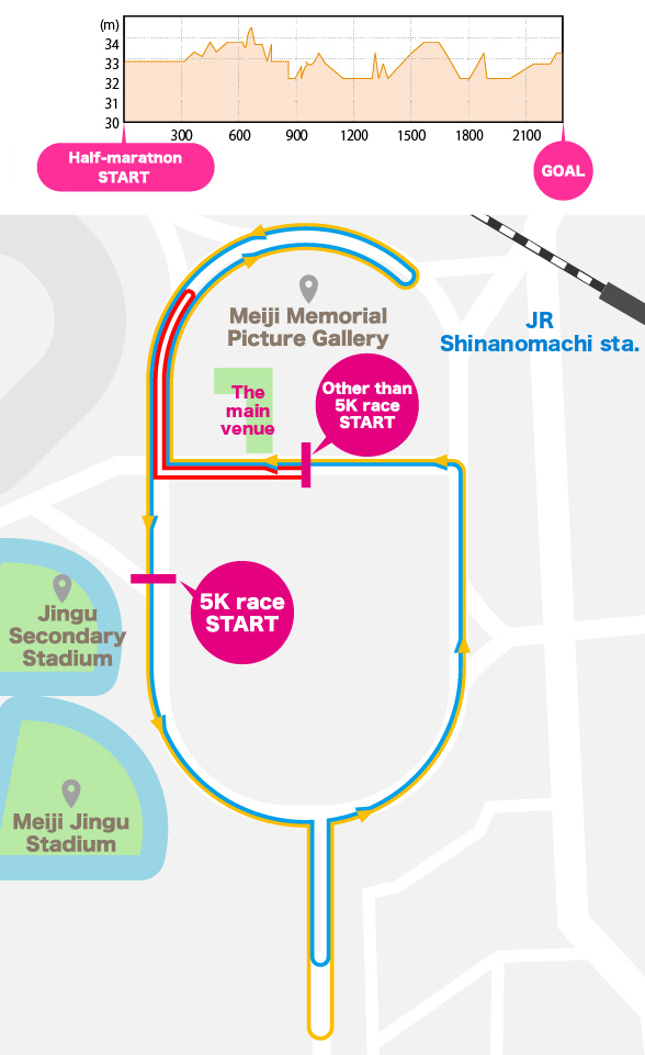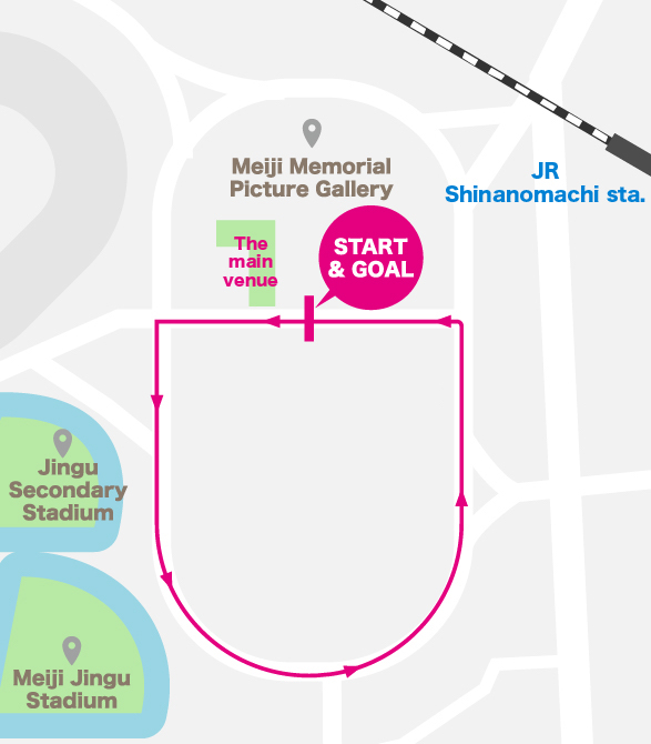 | Location | Course around Meiji Jingu Gaien Facilities (Closest station: JR Chuo Line: Shinanomachi Station, Shinjuku-ku, Tokyo |