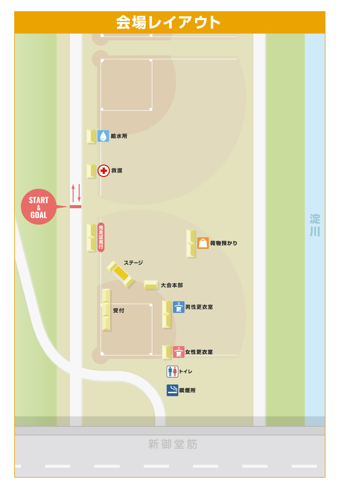| 更衣室 | 会場内に男性更衣室テント、女性更衣室テントをそれぞれご用意しております。 |