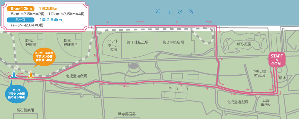 | 制限時間 | ■5kmの部 :2時間 ■10kmの部:2時間 ■ハーフマラソンの部:3時間 |