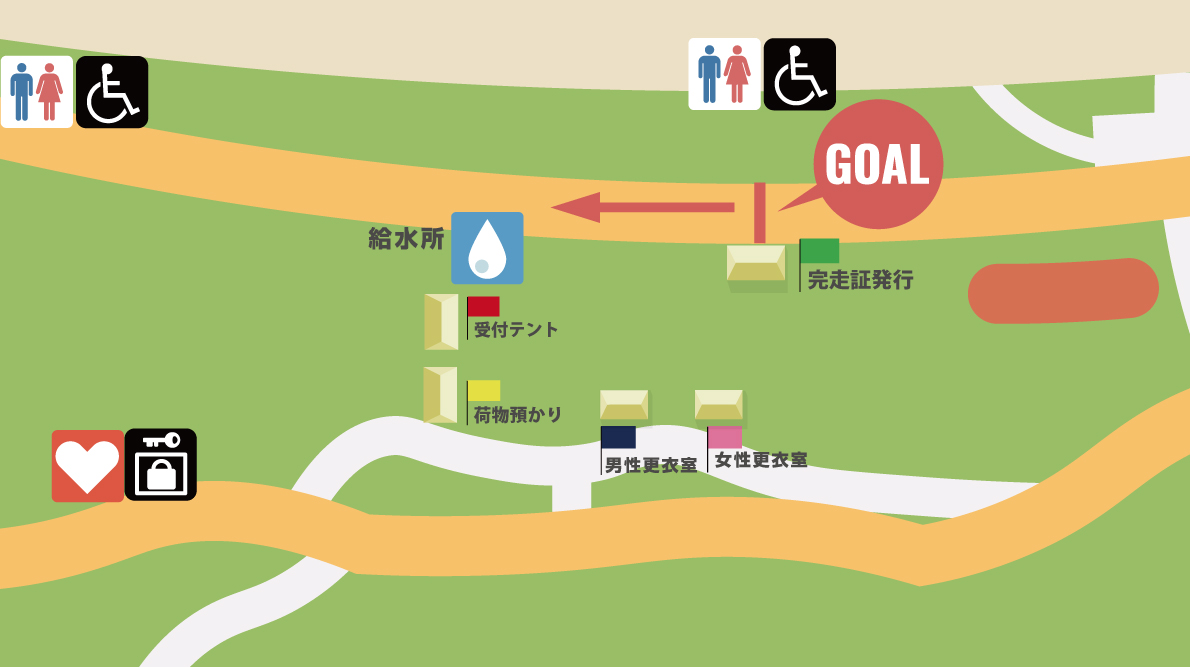 | 更衣室 | 無料の荷物置き場あり、男女更衣室完備、会場常設トイレあり |