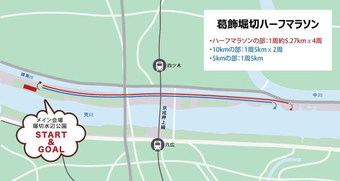 第5回葛飾堀切ハーフマラソン開催日時:11月4日(土)受付時間:8:00〜11:10 開始時間:09:15 終了時間:13:00 【タイムスケジュール】 08:00 受付開始 09:15 ハーフマラソンの部 開会式 09:30 ハーフマラソンの部 スタート 11:15 10km・5kmの部 開会式 11:30 10km・5kmの部 スタート 13:00 競技終了予定 ※各部門スタート20分前まで受付をすませてください。 ※各部門スタート15分前に競技説明を行います。 ※スケジュールは変更になる場合がございます。 第6回葛飾堀切ハーフマラソン開催日時:5月3日(金祝)受付時間:7:30〜10:10 開始時間:8:30 終了時間:12:00 【タイムスケジュール】 07:30 受付開始 08:15 ハーフマラソンの部 開会式 08:30 ハーフマラソンの部 スタート 10:15 10km・5kmの部 開会式 10:30 10km・5kmの部 スタート 12:00 競技終了予定 ※各部門スタート20分前まで受付をすませてください。 ※各部門スタート15分前に競技説明を行います。 ※スケジュールは変更になる場合がございます。 |