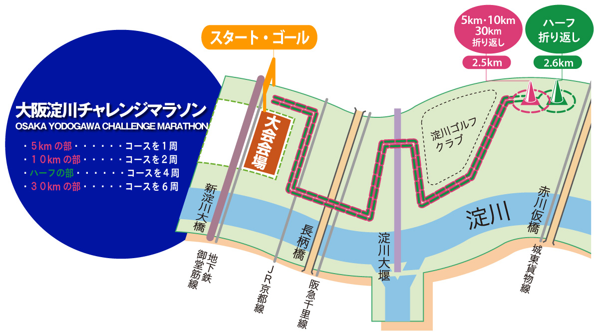 | 開催場所 | ■会場 大阪 淀川河川公園西中島地区 野球場 淀川河川敷コース ■住所 大阪府大阪市淀川区西中島1丁目1−地先 |