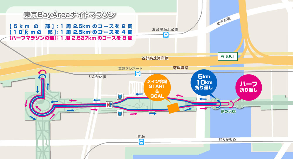 | 7/22(土) 第3回東京BayAreaナイトハーフマラソン | ハーフマラソン / 10km / 5km | 2,800円〜 |
